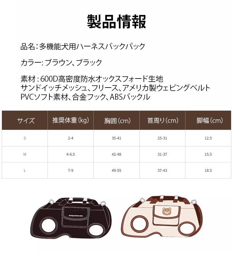 多機能犬用ハーネスバックパック