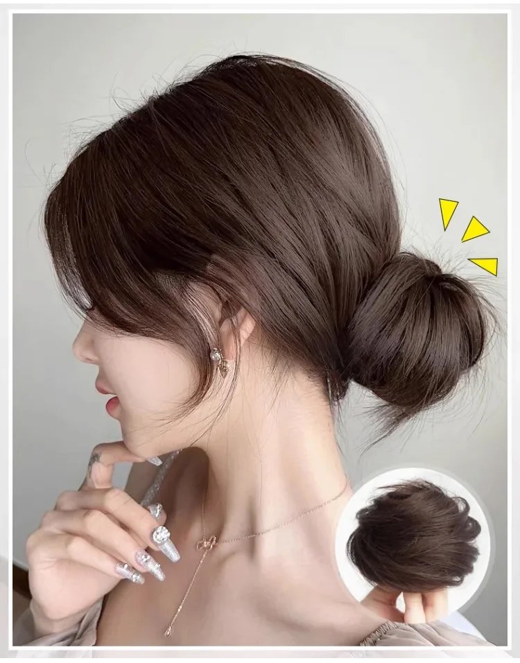 ふわふわお団子ウィッグ、新しい鳥の巣のボールヘッドスタイルのレイジーアーティファクトストレートヘアリング