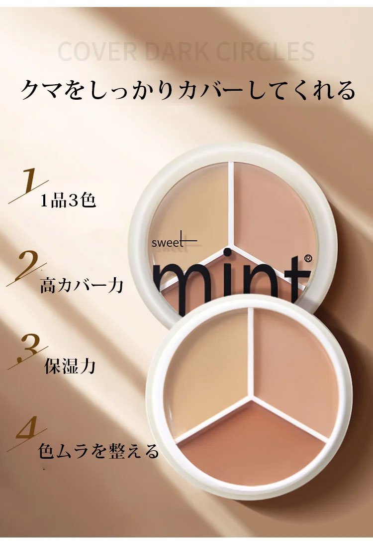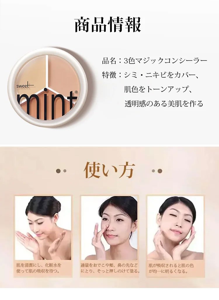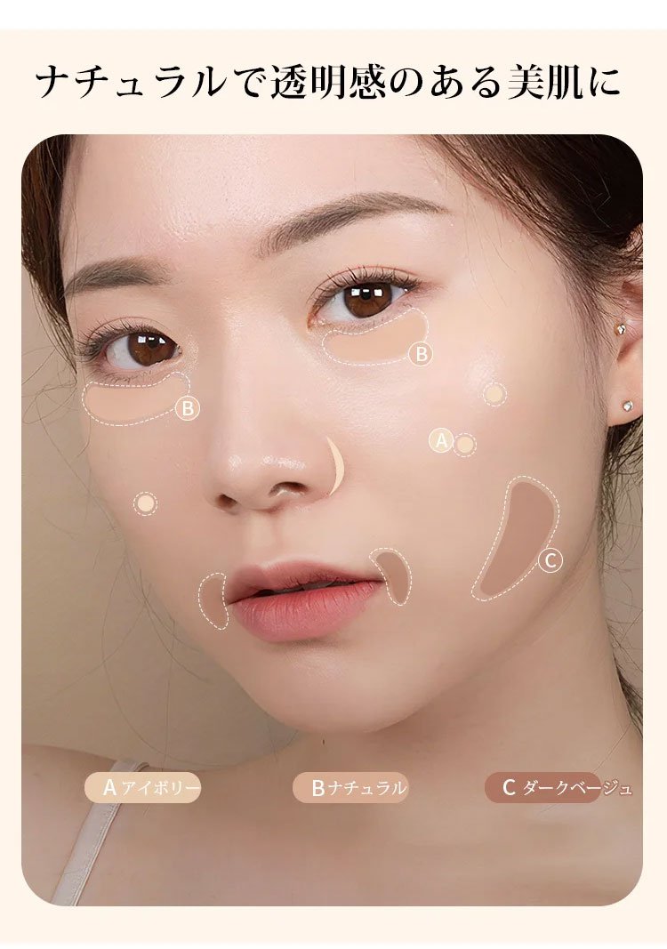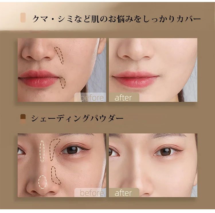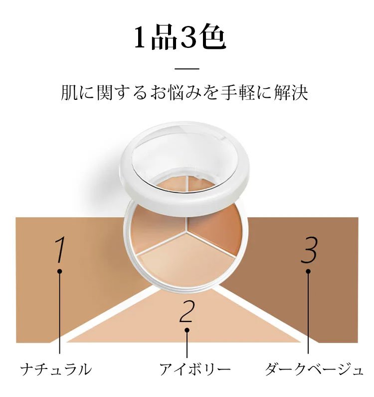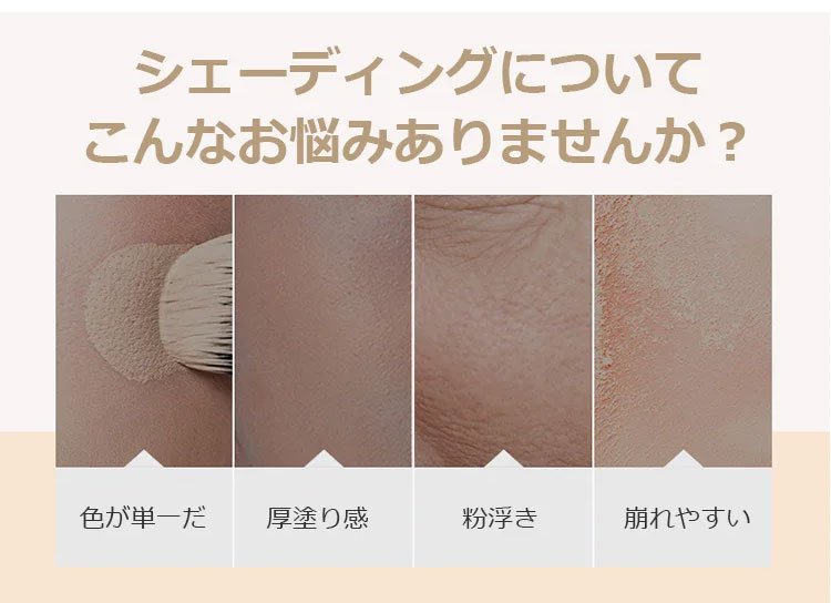3色シェーディング - トラブルカバー、テカリ防止、化粧浮きしない、防水、ナチュラル