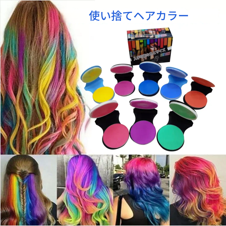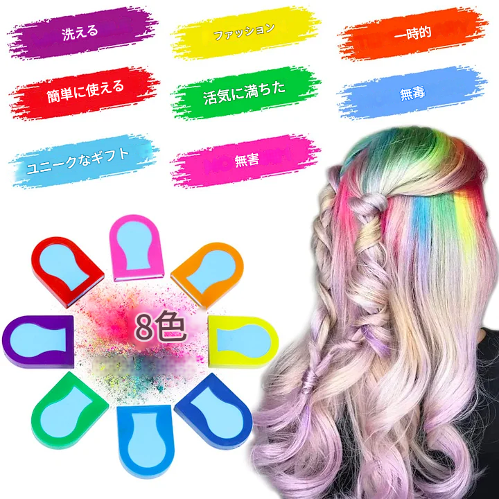 8 色のレインボーカラーのヘアチョークには、青、緑、黄色、オレンジ、紫、ピンク、赤など、鮮やかで鮮やかな色が多数揃っています。美しくユニークな外観を演出し、独自のスタイルを選択してください。