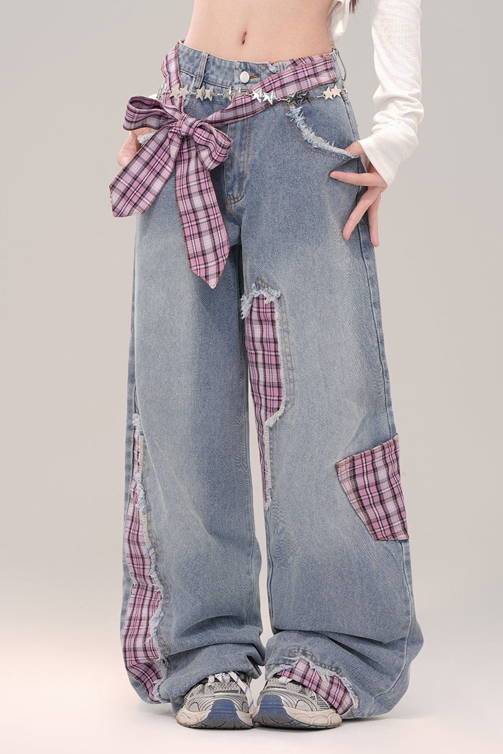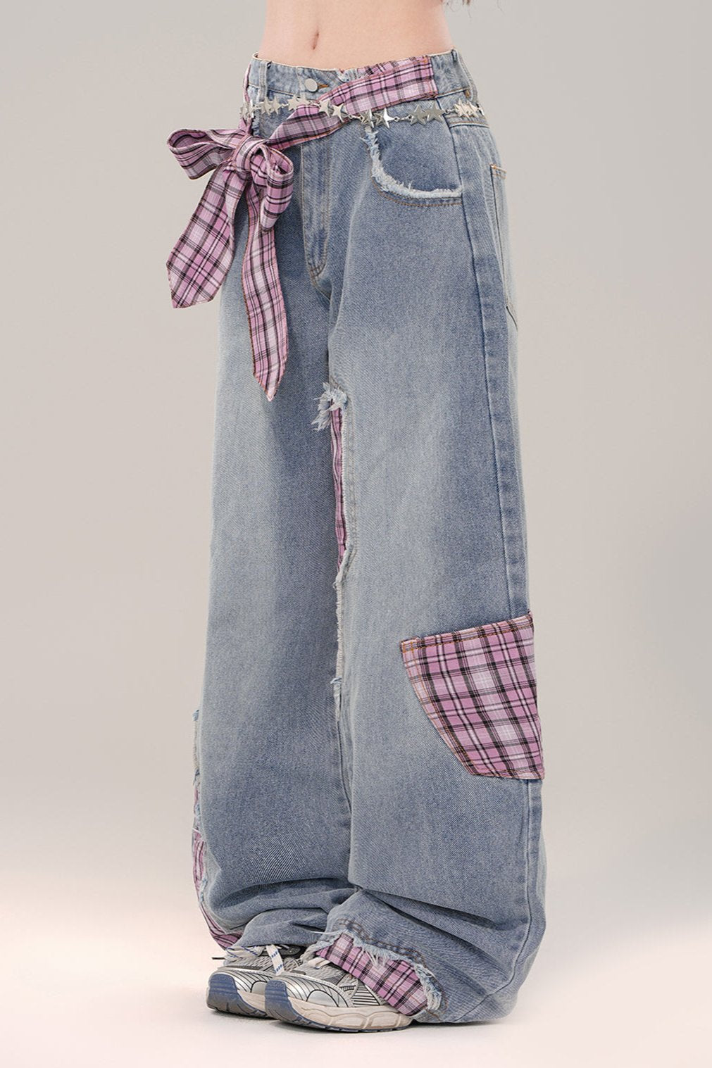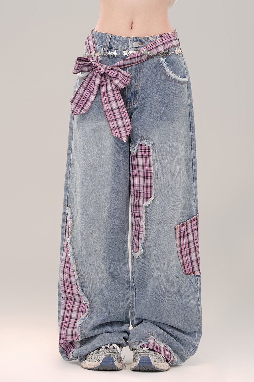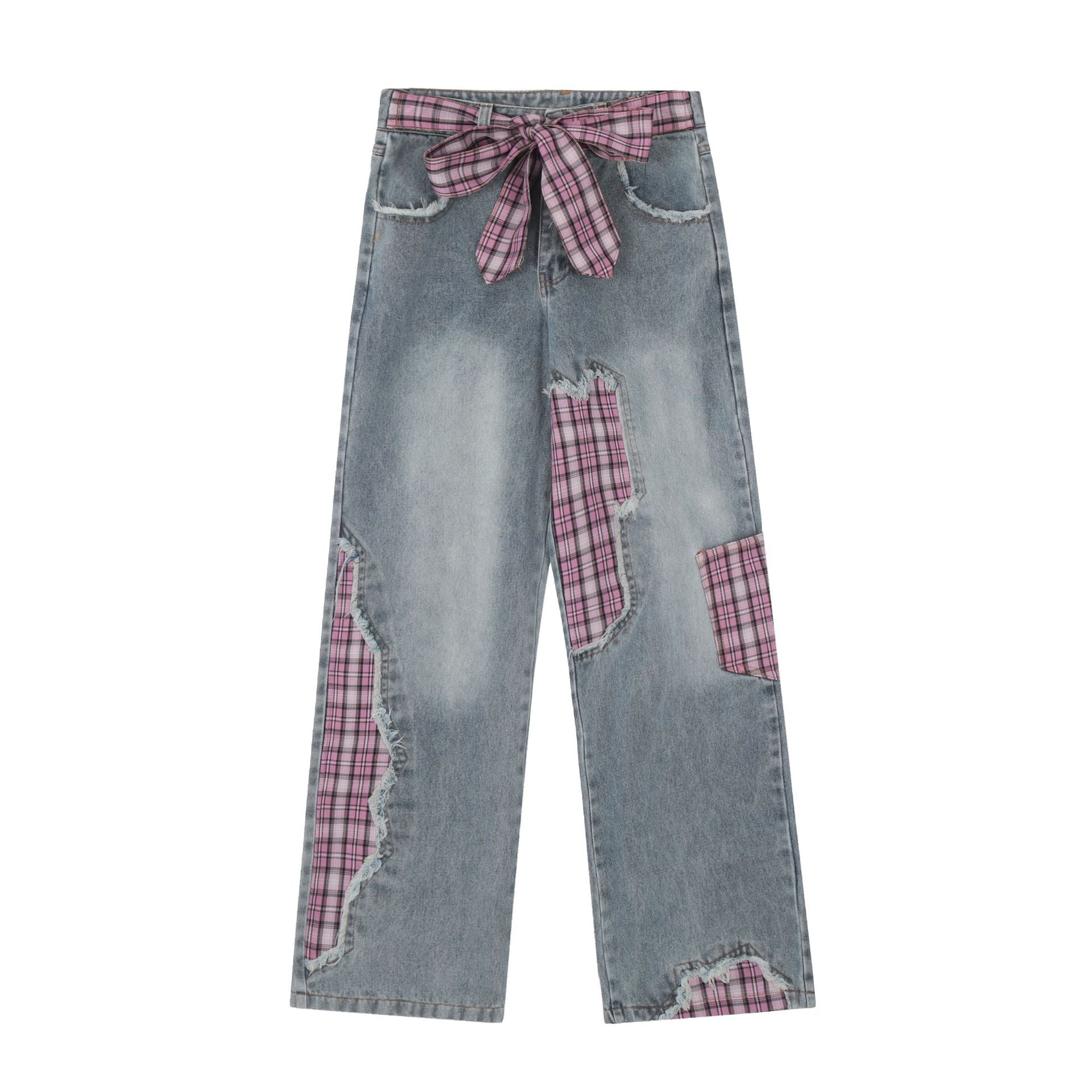 アメリカンレトロルーズウォッシュステッチデニムパンツ