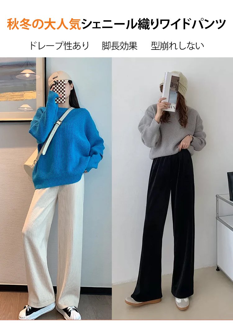 ウエストゴム美脚ワイドパンツ