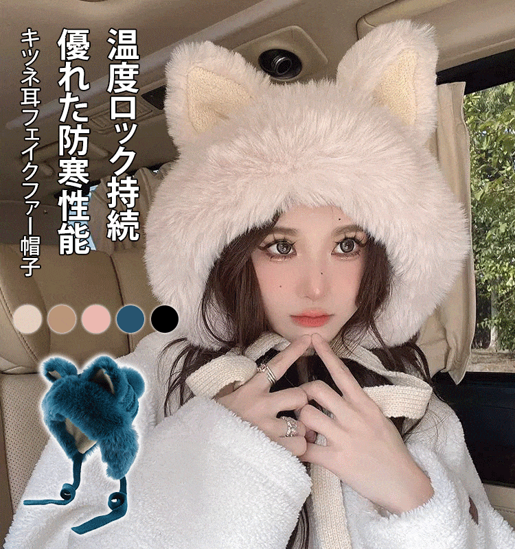 キツネ耳フェイクファー帽子