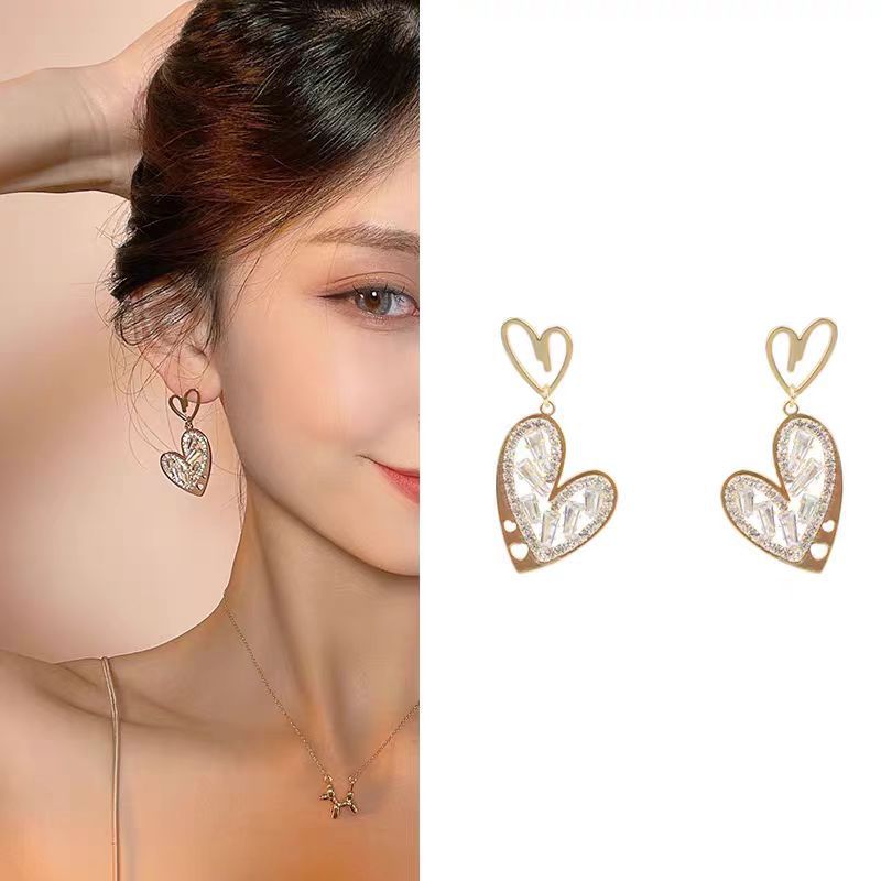 中空ハートシェイプ ダイヤモンド イヤリング