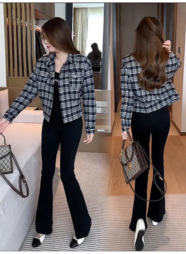 【スタイルアップ】チェック柄ジャケット