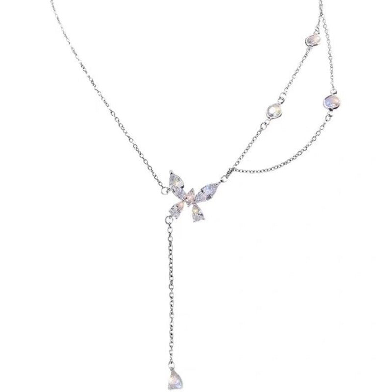 女性用フラッシュ ダイヤモンド ジルコン バタフライ ネックレス/オールマッチ鎖骨チェーン